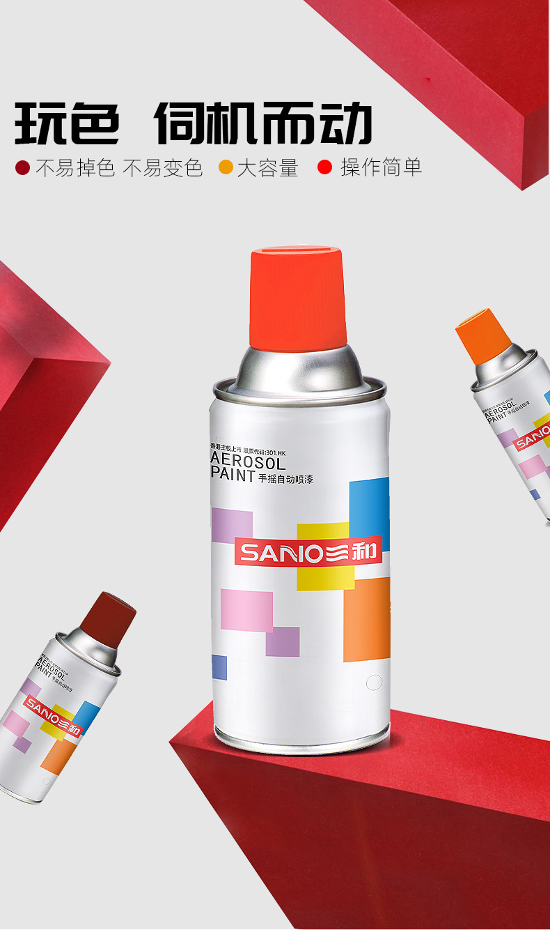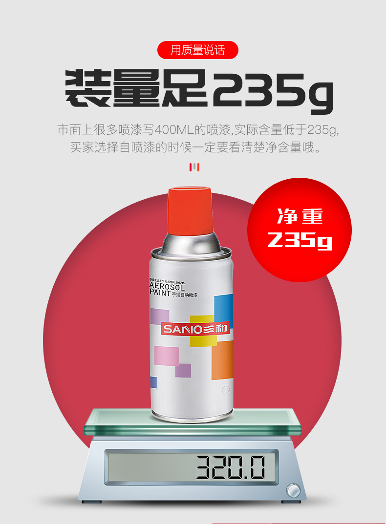 三和自喷漆RAL3020交通红喷漆汽车改色补色防锈油漆金属防锈喷漆