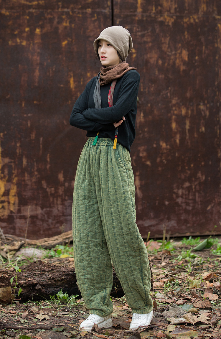 25冬苎麻加绒加厚保暖休闲裤棉麻女装禅意复古显瘦女式灯笼裤棉裤
