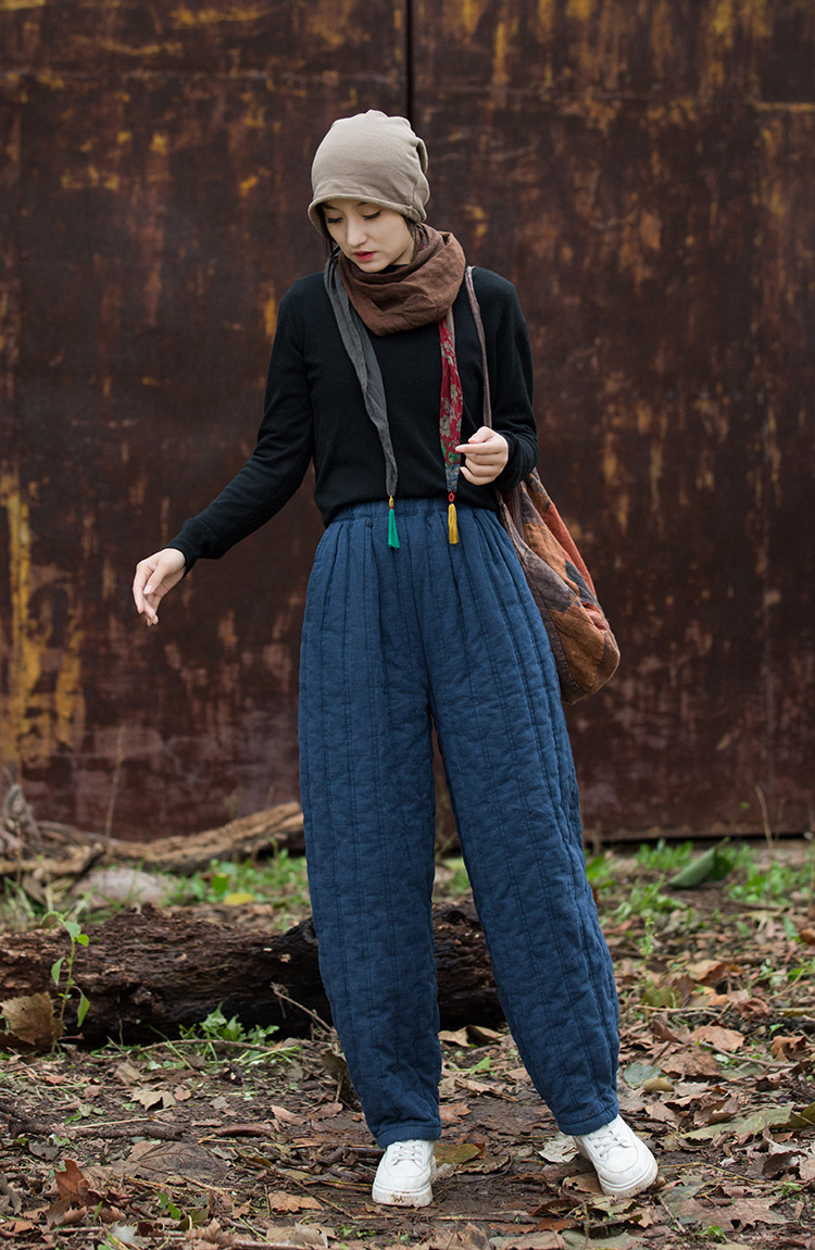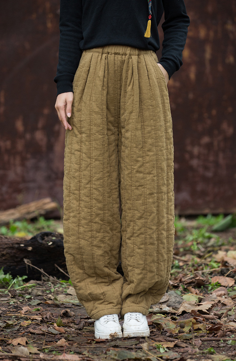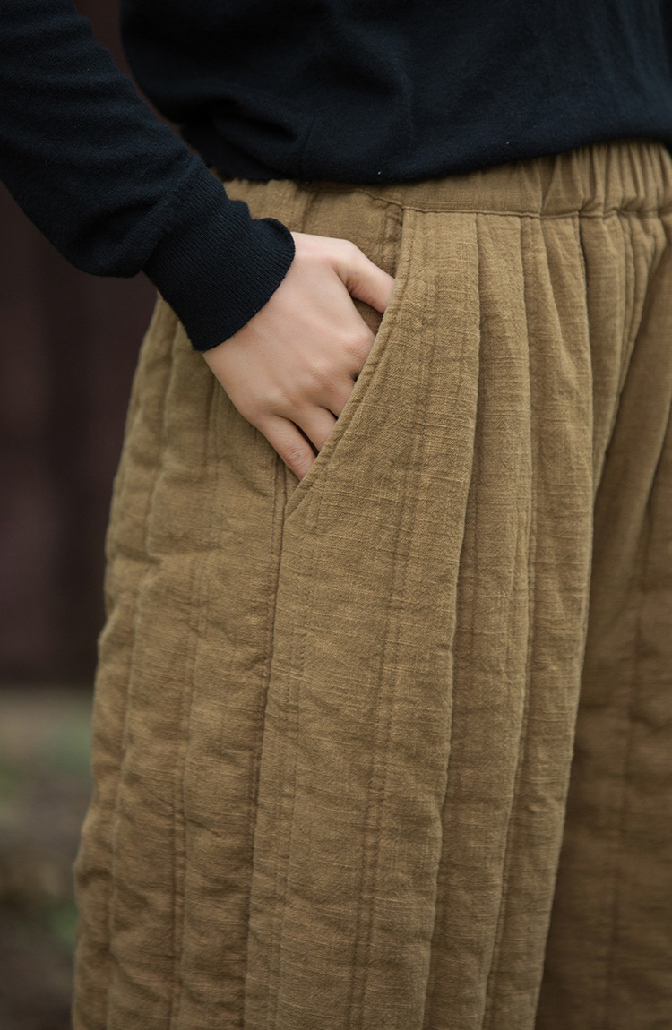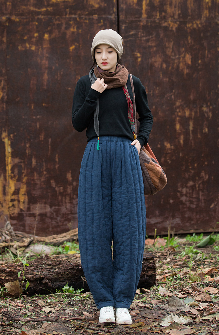 25冬季苎麻炒色做旧加绒加厚灯笼裤棉麻女装新品打坐禅修长裤棉裤