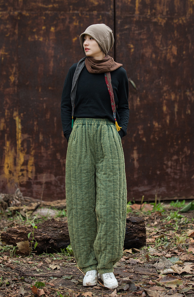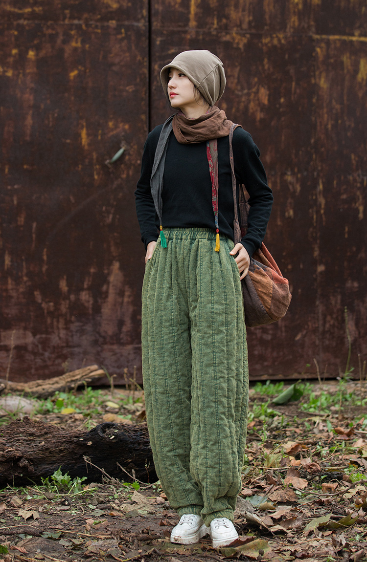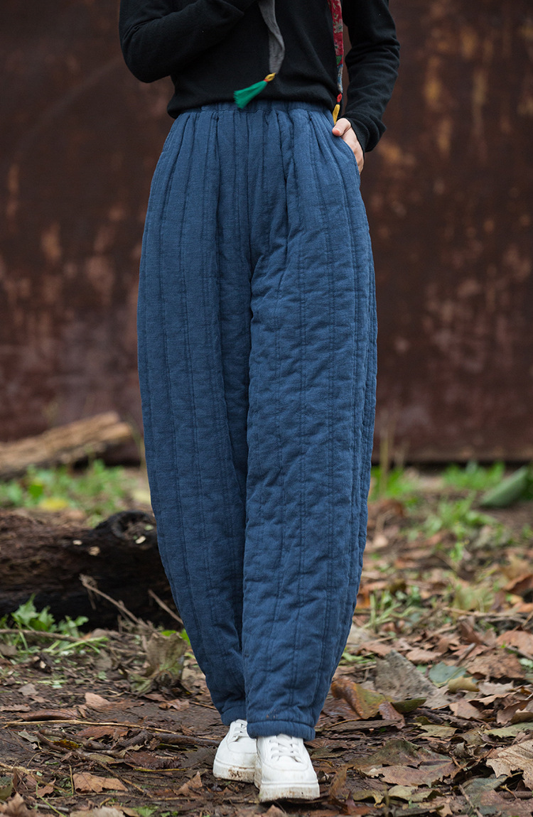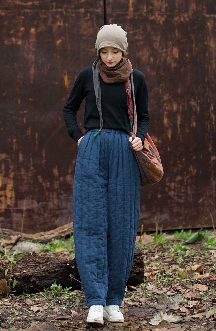 25冬季苎麻炒色做旧加绒加厚灯笼裤棉麻女装新品打坐禅修长裤棉裤