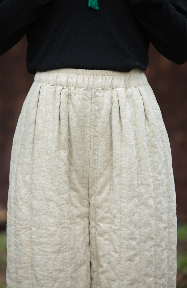 24冬女装新款苎麻夹棉绗缝炒色保暖长裤时尚百搭休闲修身女式棉裤