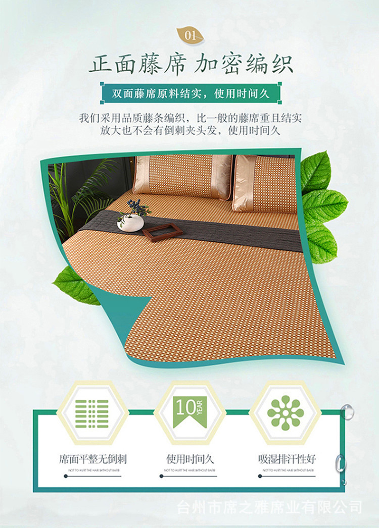 夏季藤席1.5米1.8m床单双人床宿舍学生凉席0.9可折叠2米草席子1.2