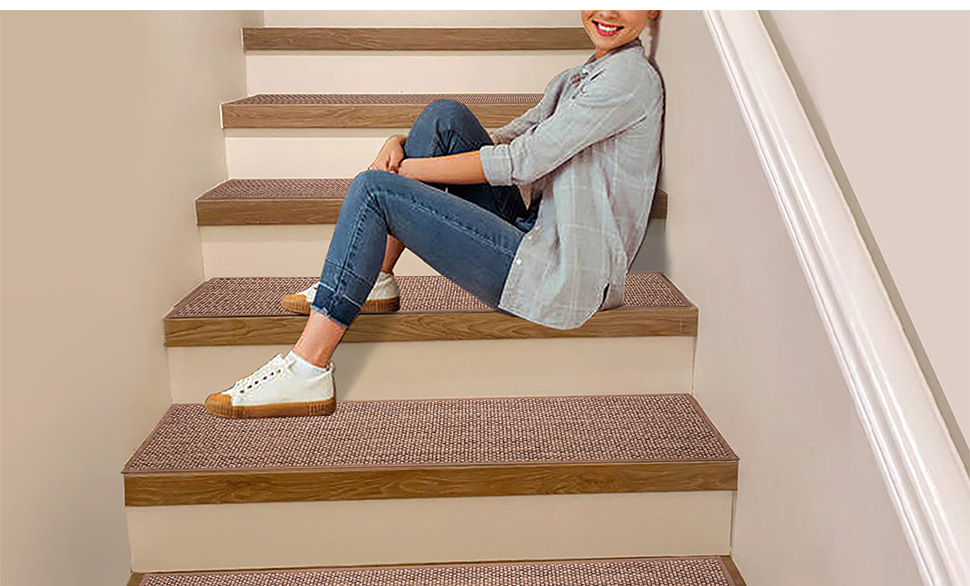 日式仿亚麻楼梯垫自粘家用实木地板地垫免胶踏步贴楼梯地毯可粘