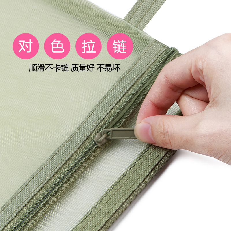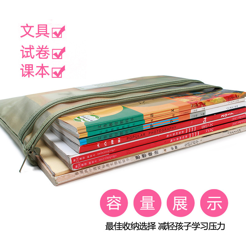 学科科目袋分类文件袋双层拉链大容量学生作业袋透明网纱A4资料袋