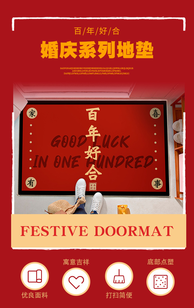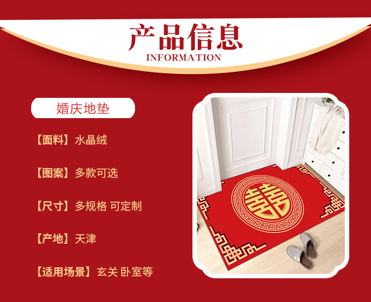 新中式喜庆结婚地毯地垫卧室婚房红地毯客厅玄关脚垫喜字入户门垫