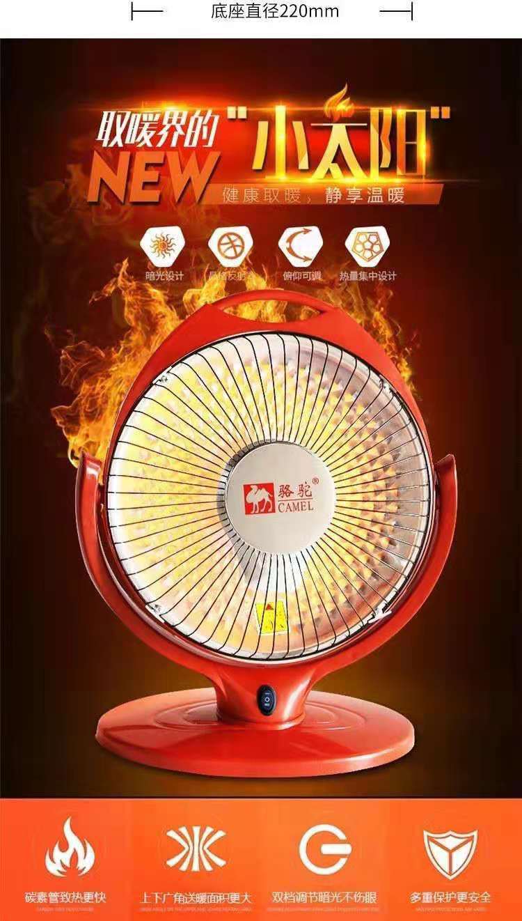 骆驼小太阳取暖器家用节能台式电热扇电暖气烤火炉暖风机浴室取暖