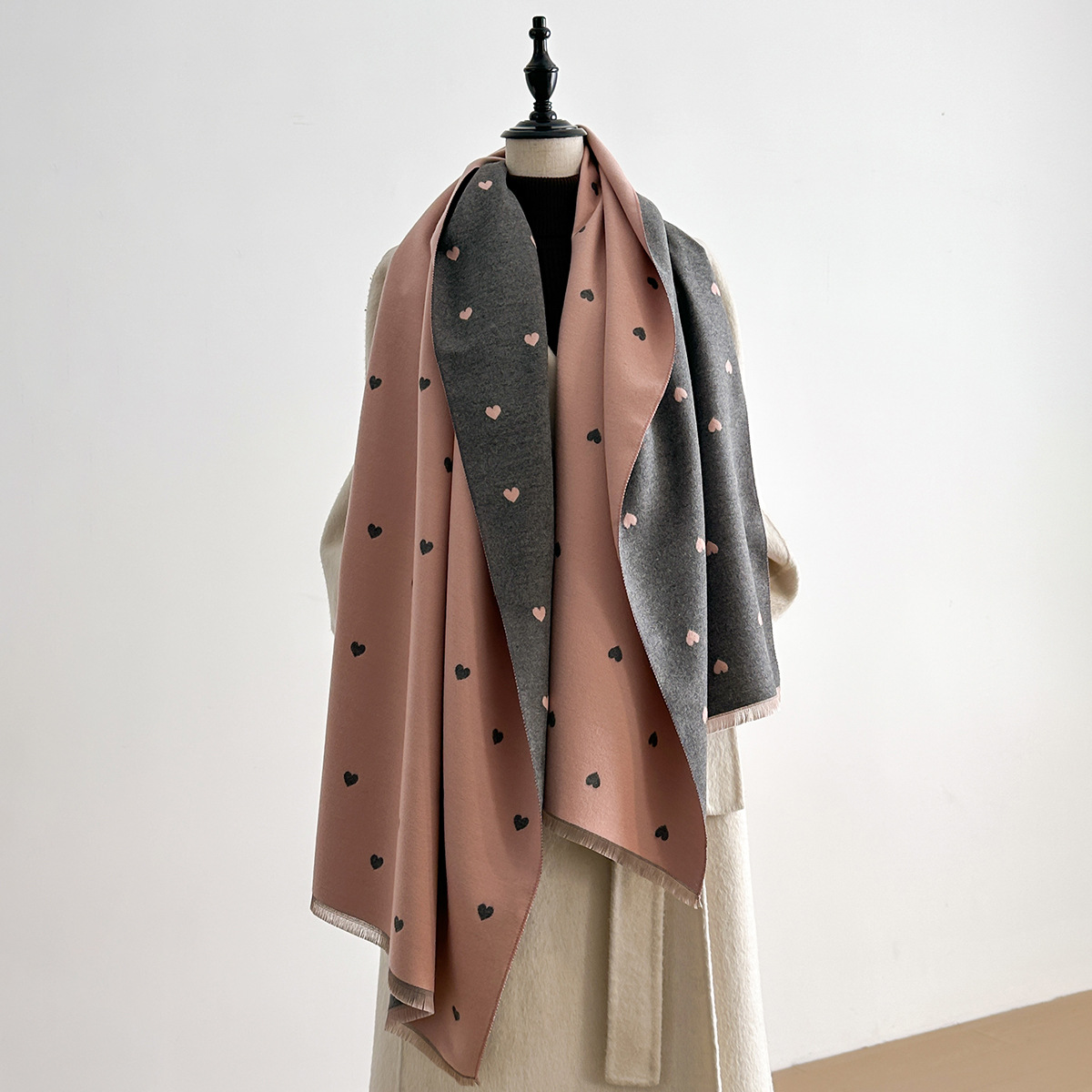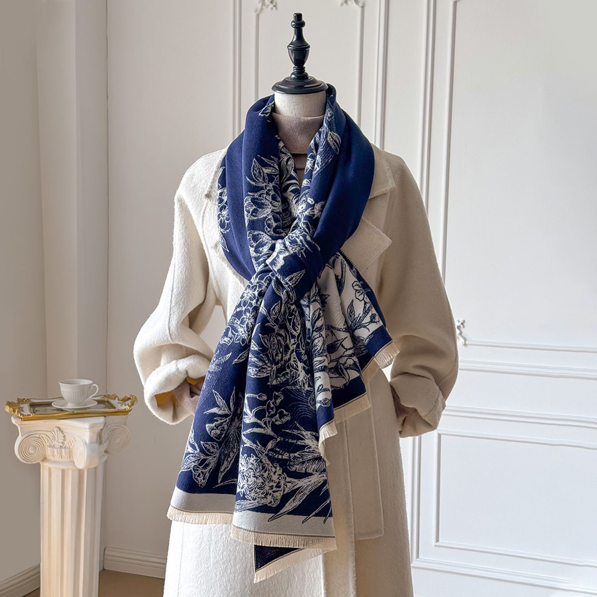 提花山水画仿羊绒围巾女士办公室空调房加厚保暖长款潮流爆款围脖