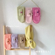 秋冬新款日韩简约糖果色笑脸标儿童毛绒围巾男女宝宝交叉保暖围巾