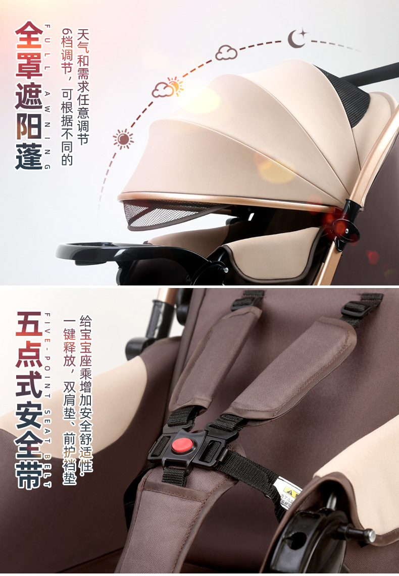 婴儿手推车可坐躺轻便高景观宝宝手推车双向儿童折叠婴儿遛娃推车