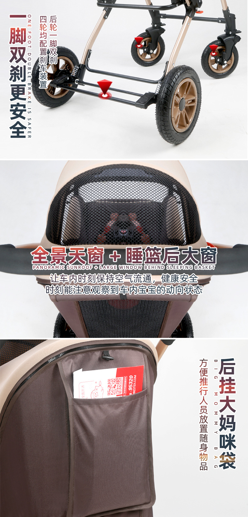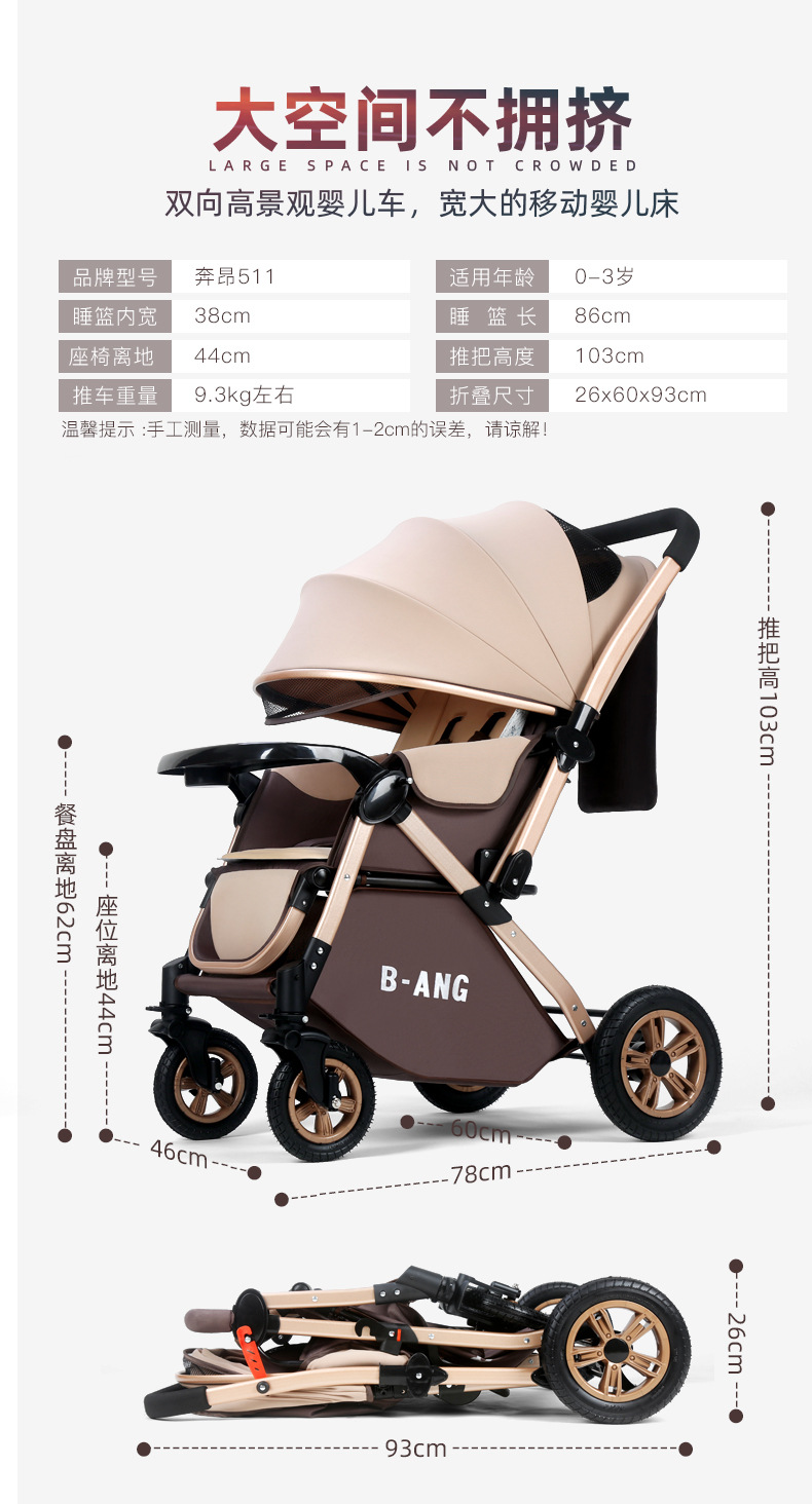 高景观新生儿宝宝婴儿推车可坐可躺可折叠便携带减震双向睡篮推车