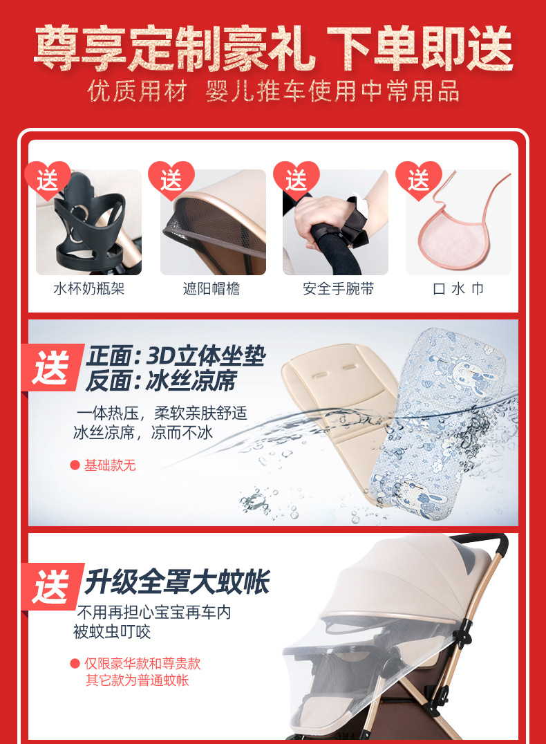 宝宝好v16遛娃神器可坐躺一键折叠轻便婴儿车溜娃双向0-6小孩推车