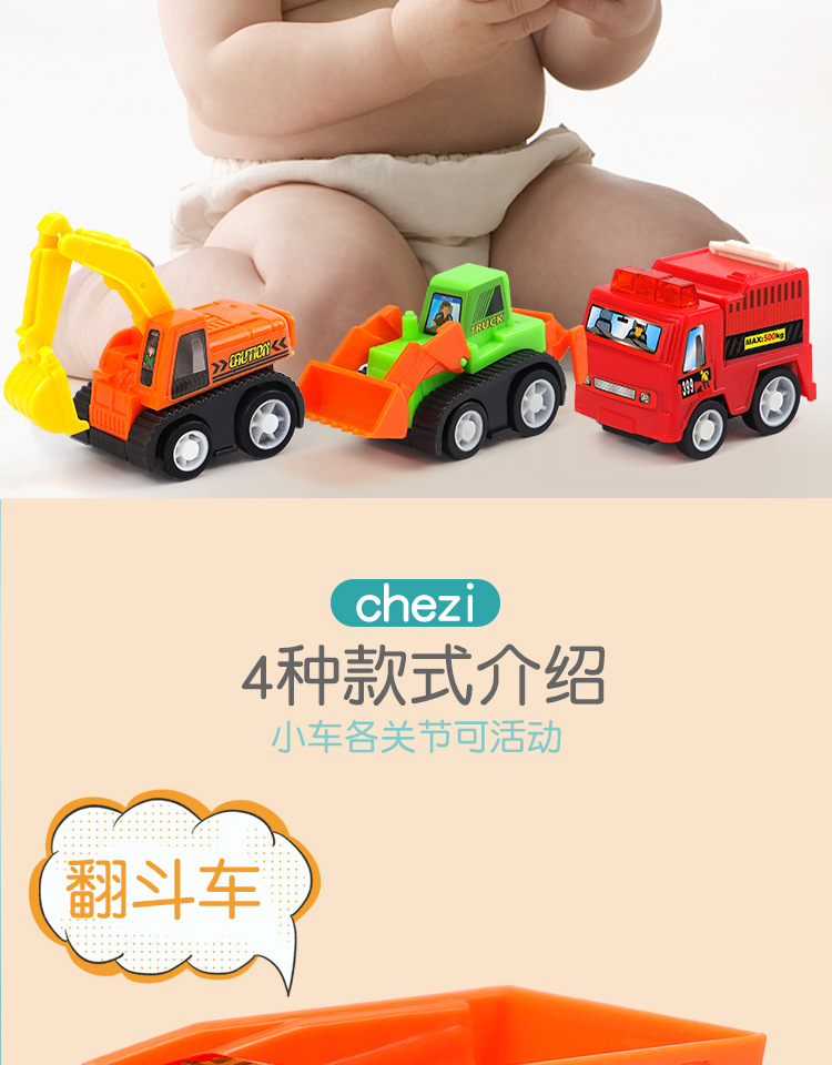 惯性儿童玩具车宝宝回力工程车队挖掘机男孩子互动认知0-3岁益智