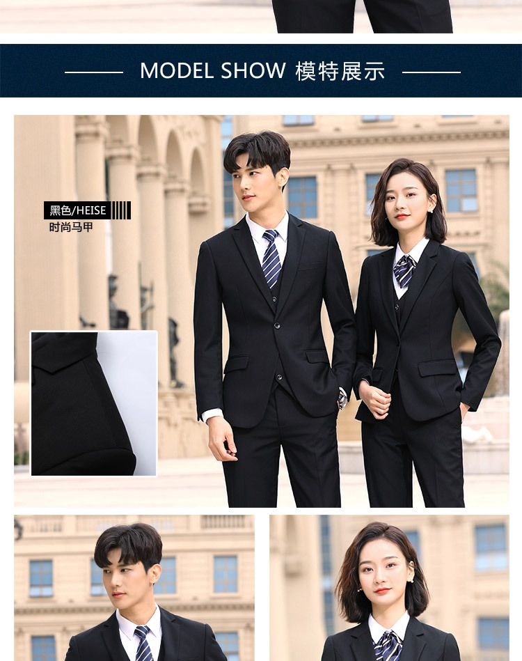 女黑色西装+黑色马甲+白色衬衫+黑色裤子