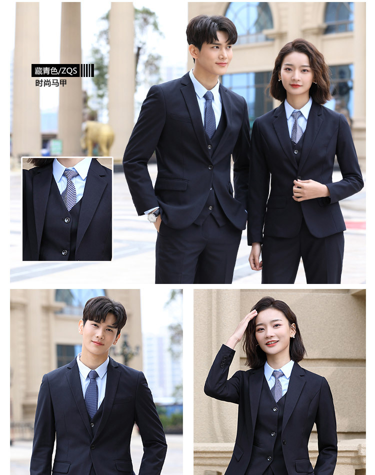 女藏青西装+藏青马甲+蓝色衬衫+藏青裤子