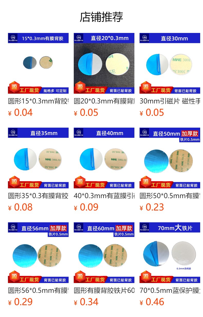 引磁片铁片带无痕亚克力背胶车载磁吸引磁铁片工厂直销不锈铁现货