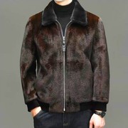 皮草大衣男中长款海宁皮毛一体仿貂皮加绒加厚保暖中老年男装外套