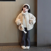 尖子蛋韩系童装2025冬季新款女童外套加棉加厚保暖大翻领夹克皮衣