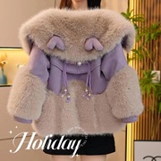 女童洋气毛外套2023冬款韩国童装女宝宝轻奢皮草短款外套潮范开衫