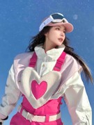芙沿玫红色爱心滑雪服套装女款2025新款防风超好看背带裤两件套装